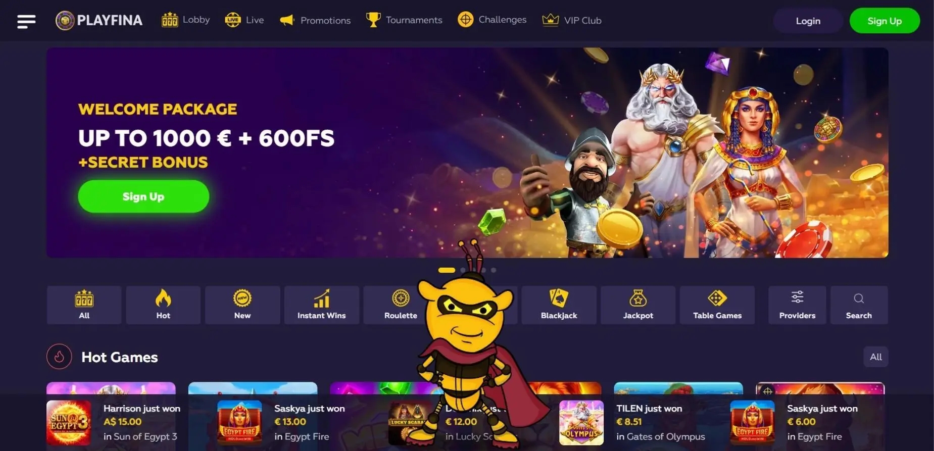 Players must be at least 18 years old to participate in Playfina bonuses.